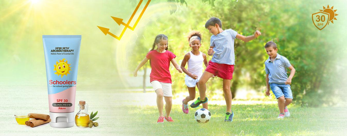 Specially designed for School-going Kids and above, Keya Seth Aromatherapy presents Schoolers Sunscreen. Keep in mind Kids’ sensitive & delicate skin; this sunscreen is formulated with Sandalwood Essential Oil, rich Olive Oil and UV filter Tinosorb M with PA++ and SPF 30 facility prevents suntan and keeps itches & rashes away.
