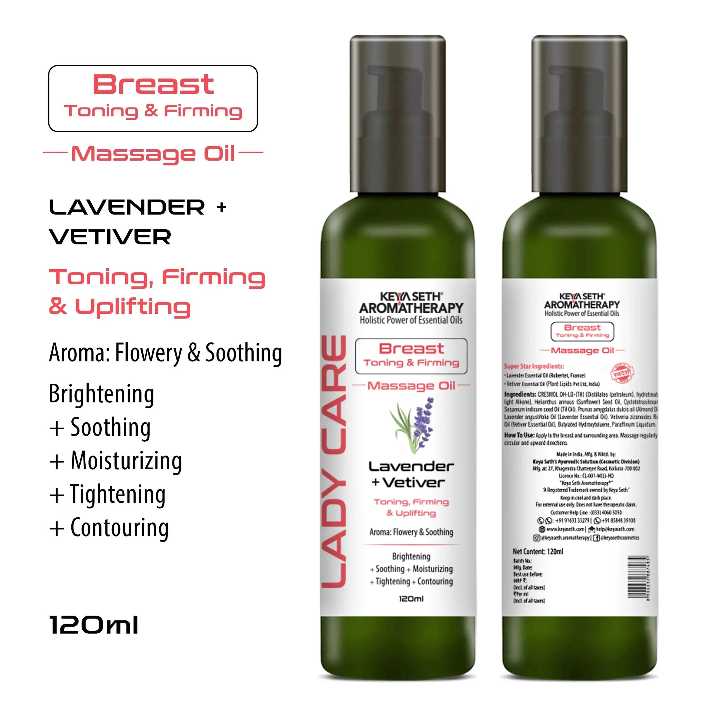 Lady Care Breast Toning & Firming Massage Oil,Toning, Firming & Uplifting, Lavender & Vetiver