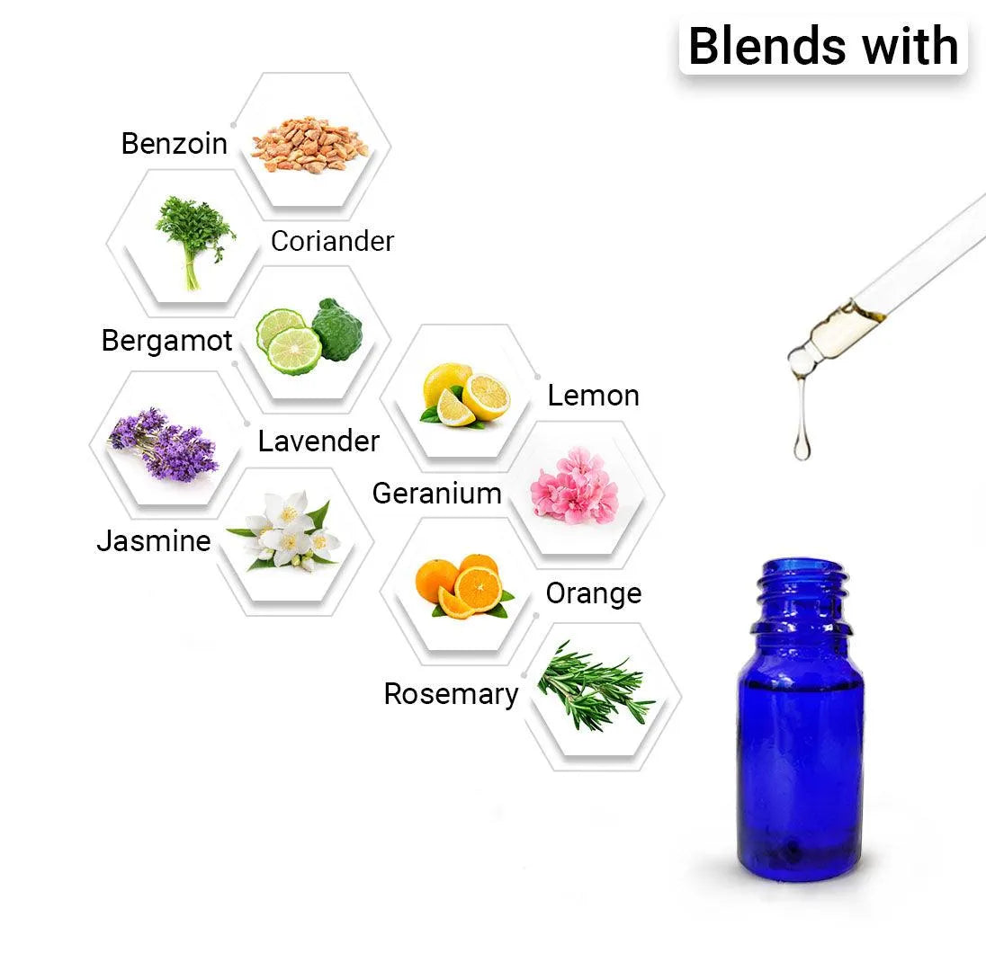 A vital oil of the perfume and soap industry for fragrance. It is used in cosmetics to refresh tired skin, either sensitive or oily. It is recognised as a non-irritant, non-sensitizing & non-phototoxic oil. Rich in antioxidant & anti-inflammatory properties. It is perfect for preventing & treating stretch marks, fine lines, wrinkles, dry & mature skin, as it promotes cell regeneration. The antibacterial qualities help mend blemish-prone skin & treat fungal diseases.