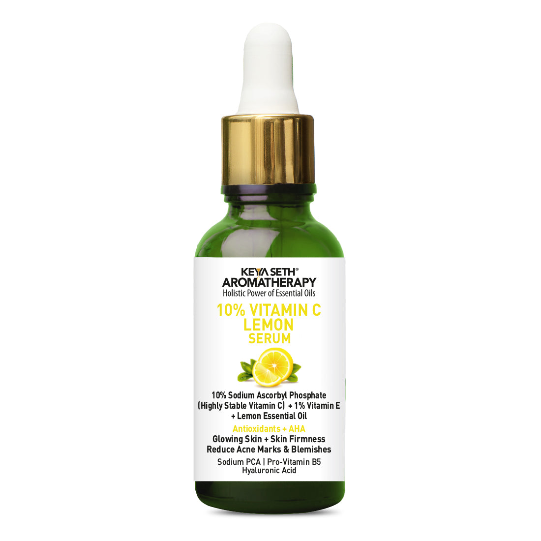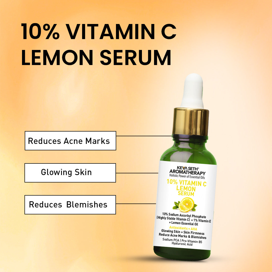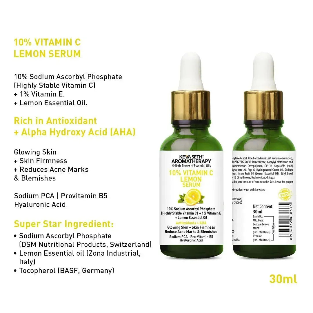 10% Vitamin C Lemon Serum, Sodium Ascorbyl Phosphate + Vitamin E & Lemon Essential Oil, Antioxidants + AHA, Glowing Skin & Firmness, Reduces Acne Marks