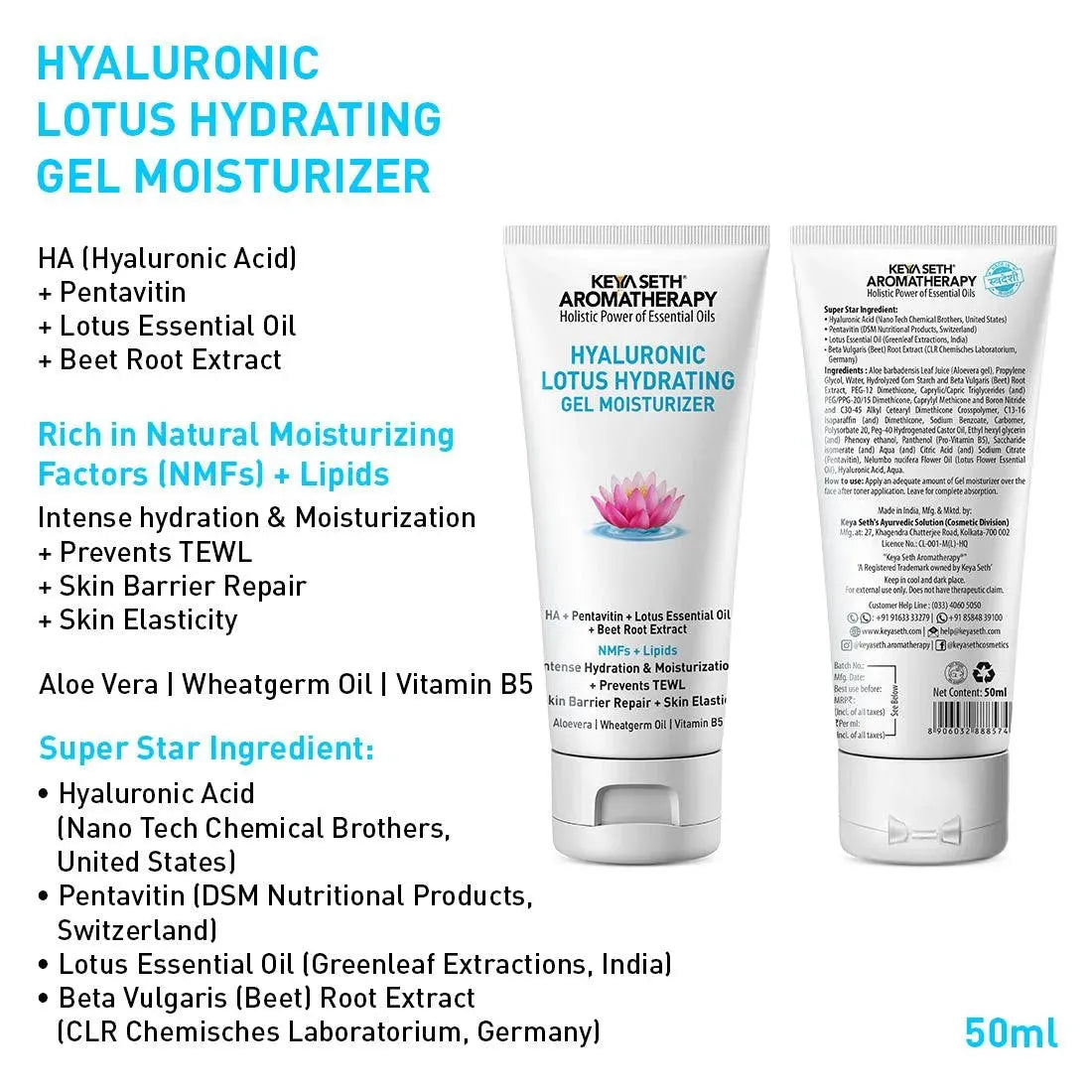 Provides multilevel hydration from deep to upper skin layers, along with Lotus Oil, Pro Vitamin B5, Tamarindus Indica, Pentavitin, Beetroot, Wheat germ, Aloe Vera & Parasol HS.