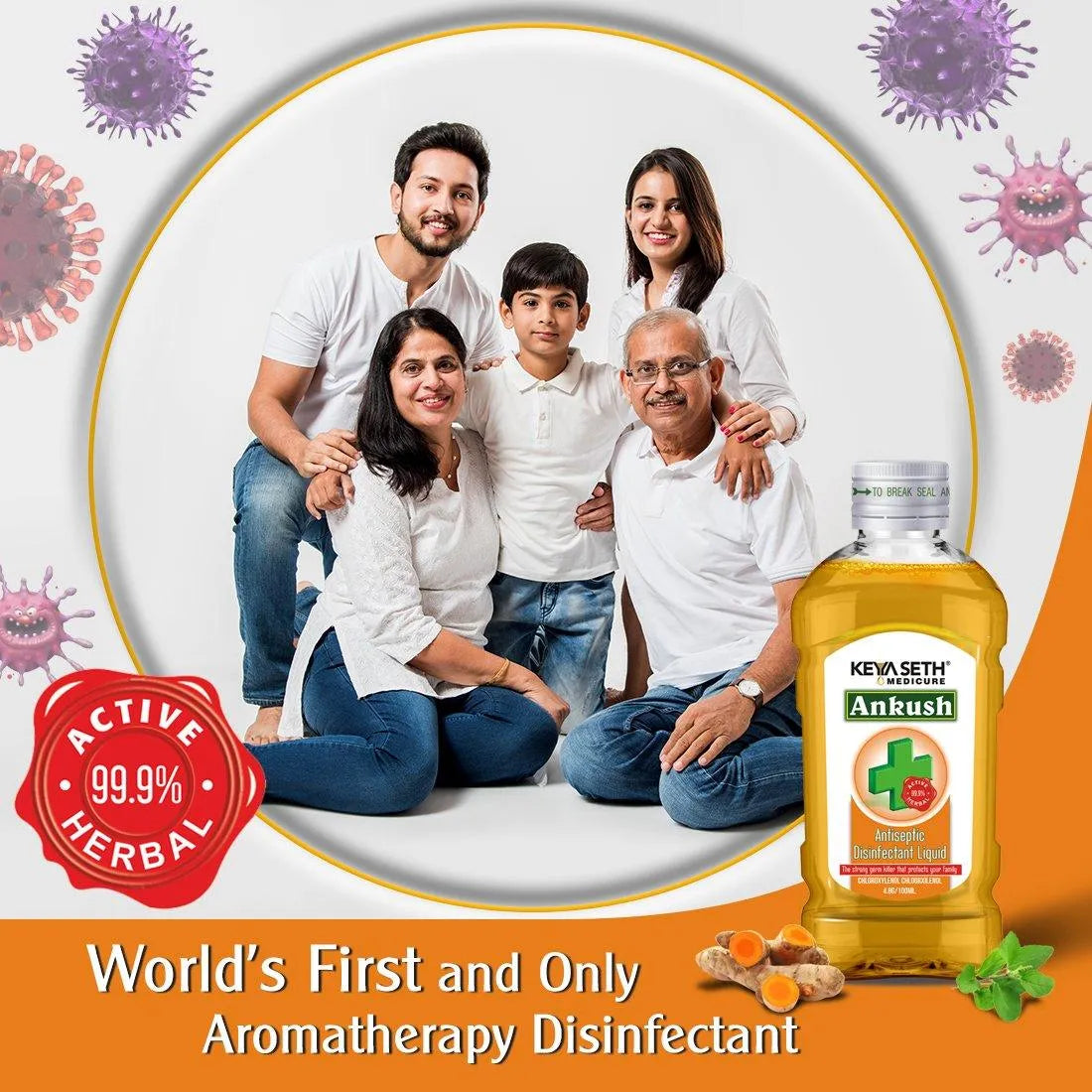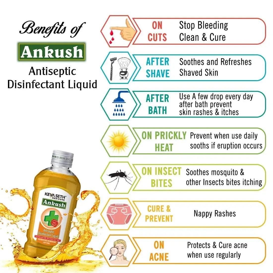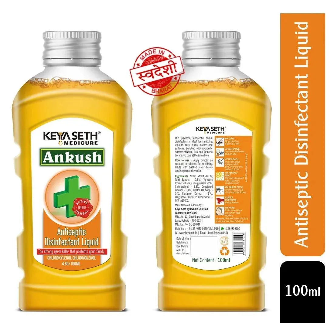 Ankush Antiseptic Disinfectant Liquid - First Aid, Medical, Multipurpose Personal Hygiene & Home Cleaner, Neem, Tulsi & Eucalyptus Essential Oil