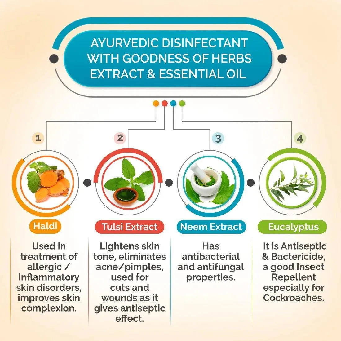 A Unique Combination Formula backed by years of Research, involving Potent Herbal Extracts blended with Eucalyptus Oil; Neem & Tulsi offers marvelous Natural Skin-Soothing, Antiseptic & Antimicrobial properties; additionally, 4.8 % Chloroxylenol makes the product highly effective as a Disinfectant