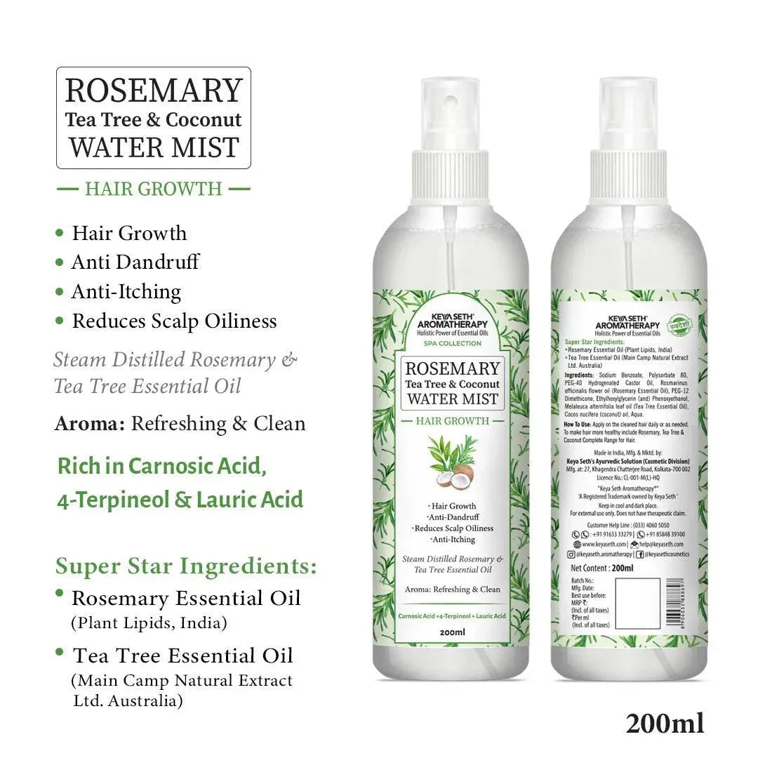 Rosemary Tea Tree Coconut Water Mist Spray,Hair Growth,Reduces Dandruff Scalp Itching & Oiliness,Steam Distilled Essential Oil