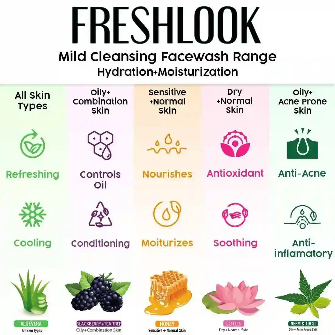 Fresh Look Blackberry & Tea Tree Face Wash, Mild, Hydrating, Moisturizing Foaming, Oily & Combination Skin
