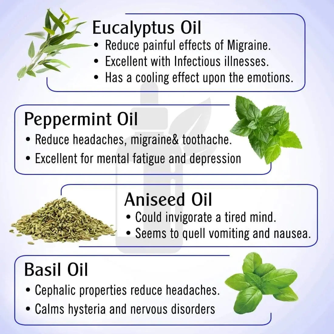 The soothing blend of Natural Therapeutic Essential Oil "Graine Out" helps to relax your Headache, Migraine, Sinusitis pain within a second. A Few Drops of "Grain out" Is Ideal to relax the body and mind for a rejuvenating feel.