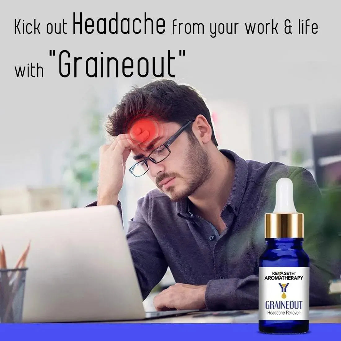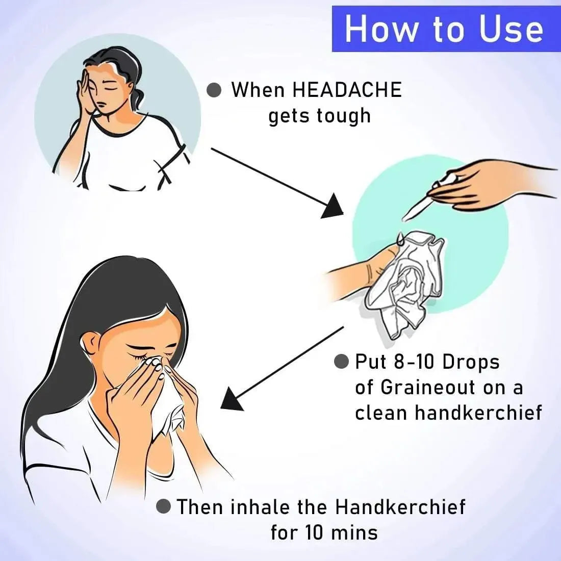 Are you searching for a natural product that can reduce the discomfort of Headache, Migraine, Sinusitis pain, and ease allergies effortlessly? "Graine out," the natural therapeutic Essential oil blend is your answer.