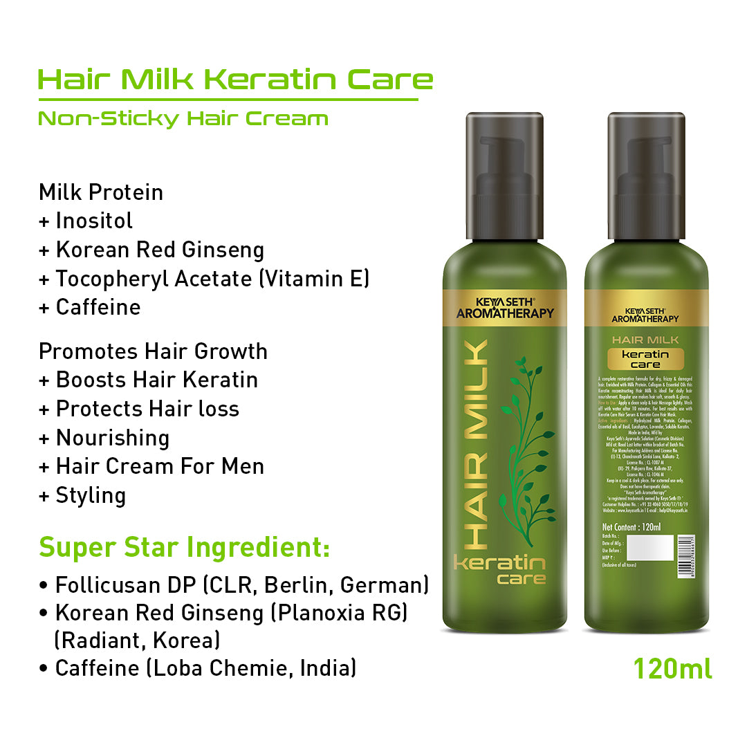 Hair Milk Keratin Care, Hair Cream for Hair Growth, Nourishing & Styling Enriched with Milk Protein, Vitamin E & Essential Oil for Daily Use