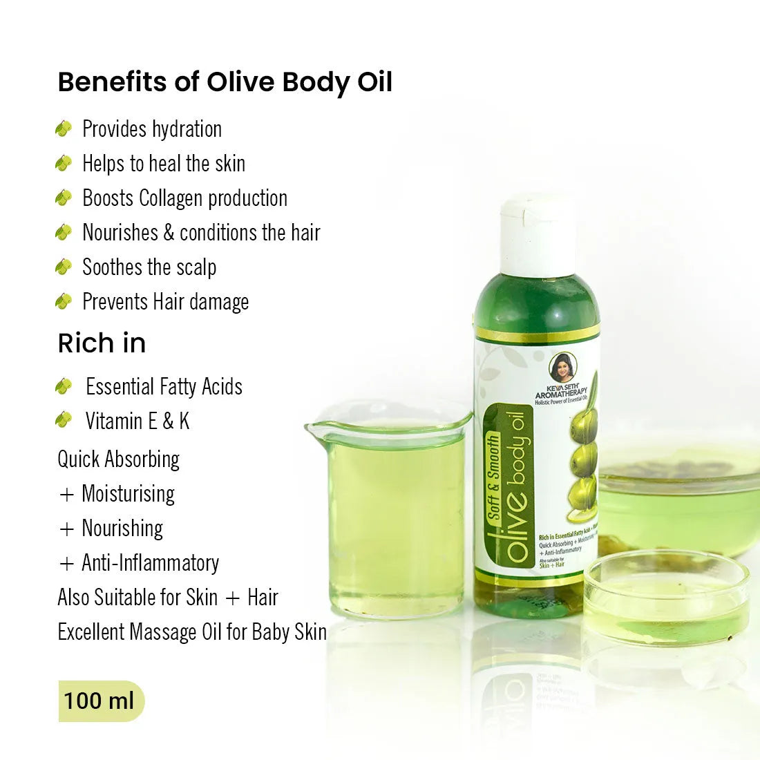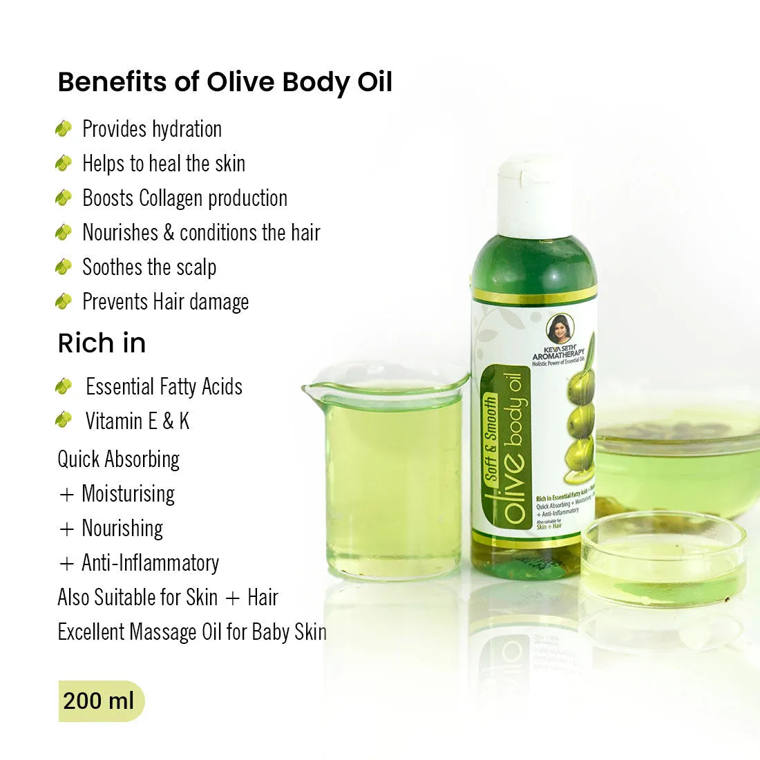 Olive Body Oil, Quick Absorbing Non-Sticky Nourishment I Hair & Skin, Daily Use After Bath Massage Oil I Pure Olive & Essential Oils Enriched