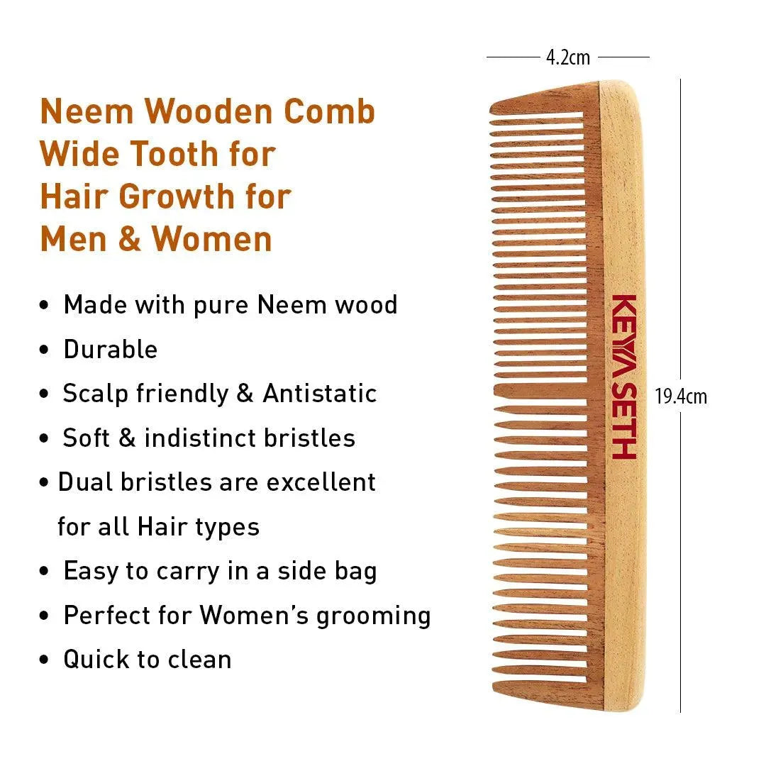 These eco-friendly, durable neem wood combs are suitable for all hair types & promote healthy hair growth by reducing static. The dual bristles comb & the wide bristle with comfy handle comb glide smoothly, reduce frizz, & gently detangle the hair daily during combing.