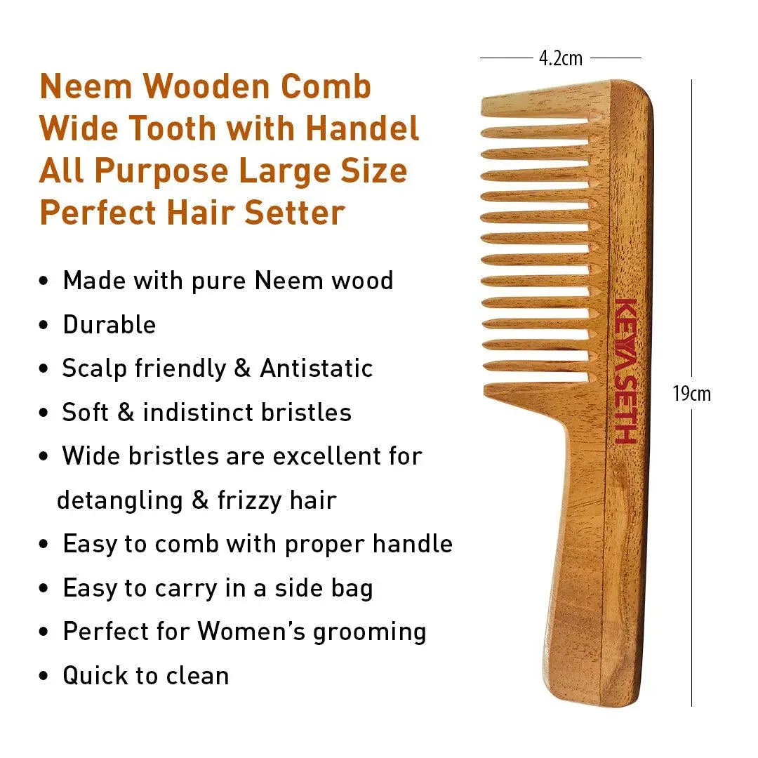 Handmade Neem Wooden Comb for Women Detangling, Anti-Static, Frizz Control, Hair Growth, Suitable for All Hair Types Dual Tooth & Large Size Wide Tooth with Handles Combo