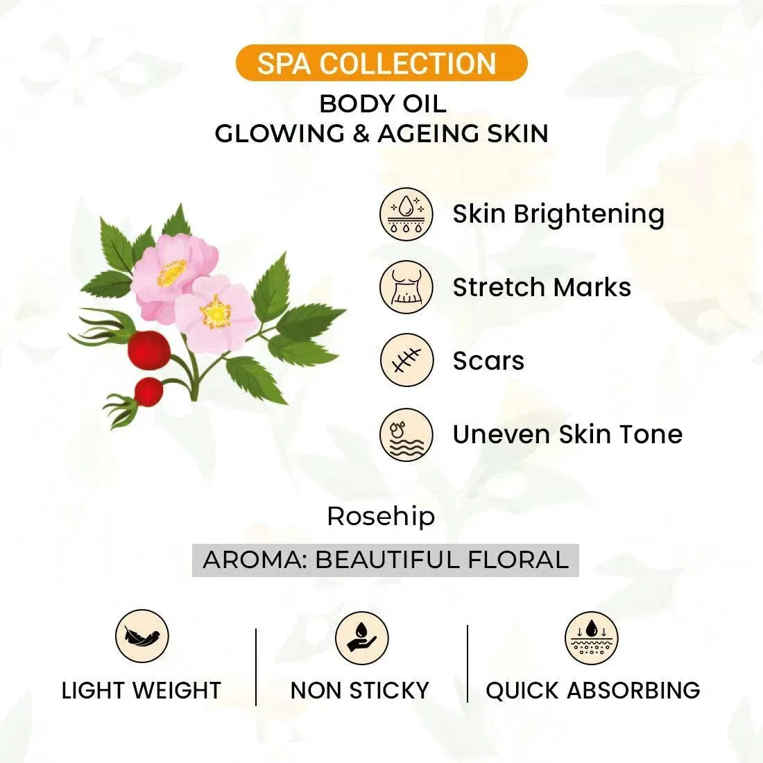 Rosehip Body Oil,Glowing, Ageing & Brighter Skin, Reduces Stretch Marks, Scars, Uneven Skin Tone