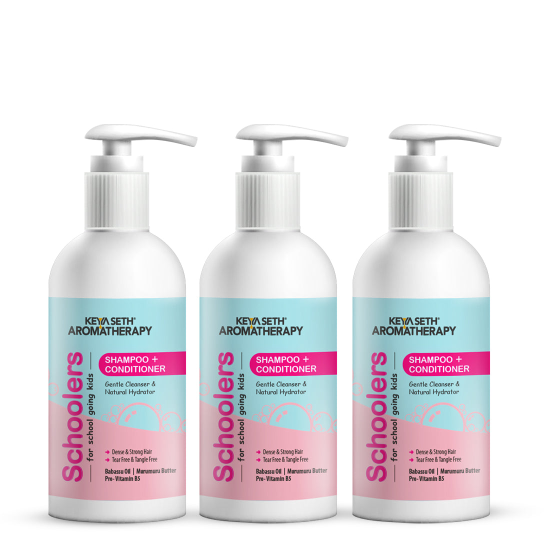 A Gentle, Chemical-Free, Cleansing Shampoo Plus Conditioner specially formulated for School going Girls and Boys above 3 years. It leaves hair healthy & shiny and strengthens the scalp. Made for Indian hair type, the natural shampoo and conditioner in one suit dry, oily, and even curly hair while maintaining a fresh smell.