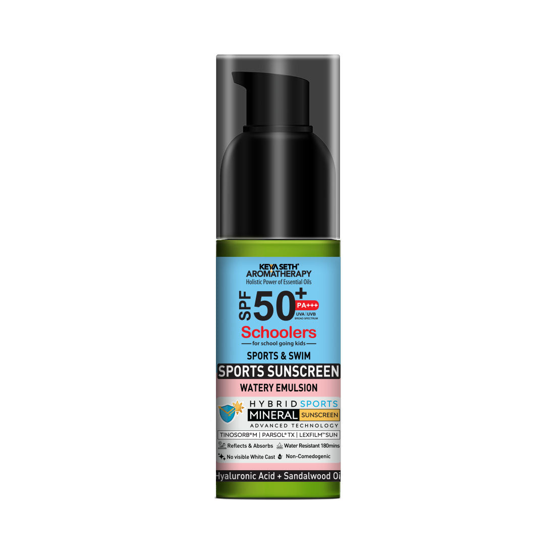 Schoolers SPF 50 PA+++, Kids Sports Mineral Watery Sunscreen Boys & Girls, No White Cast, Water Resistant 180 Mins, Tinosorb M + Parsol TX
