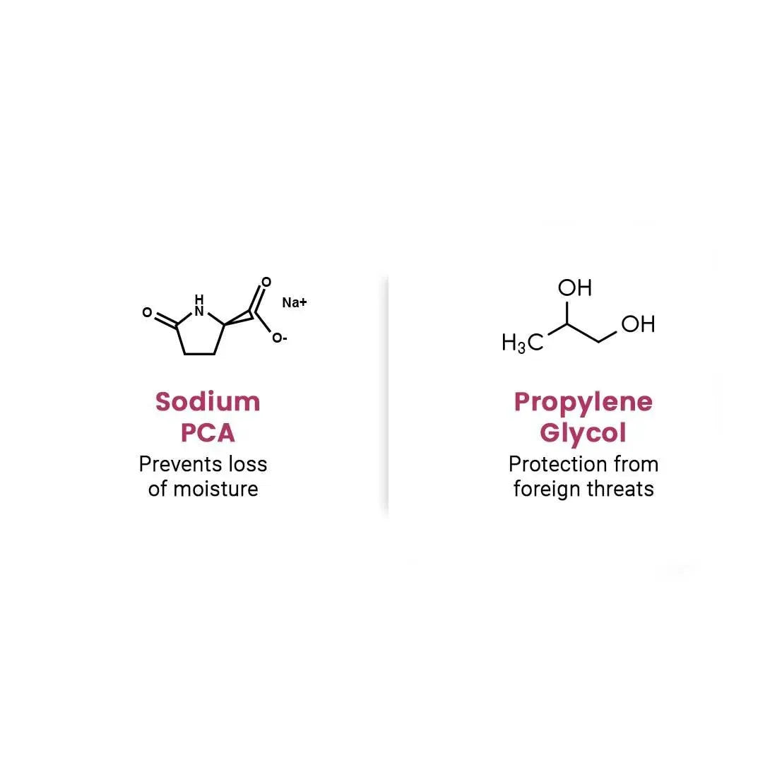 Sodium PCA: It is a naturally occurring component of human skin and a part of the "natural moisturizing factors" (NMF) that maintain a healthy epidermis. It is very hygroscopic, attracting moisture from the air & locks it inside the skin, making the skin youthful. Sodium PCA rebuilds the intracellular glue that holds the cells together. This prevents the loss of moisture and prevents the growth of bacteria and allergens on the skin. This reduces the chances of breakouts, clogged pores, and other skin problems.