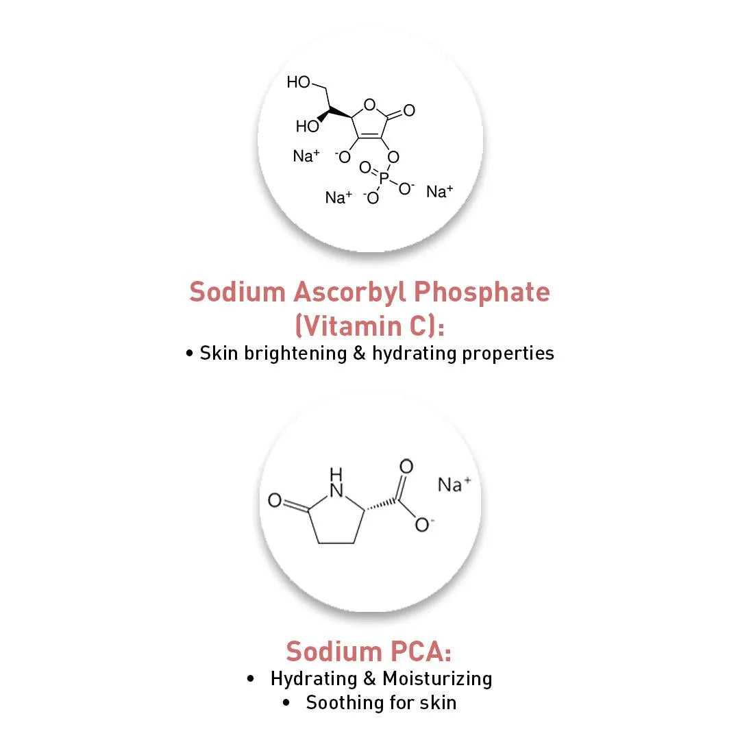 Vitamin C and Sodium PCA provide anti-inflammatory and antioxidant benefits, reducing redness, irritation, and moisturizing sensitive skin.