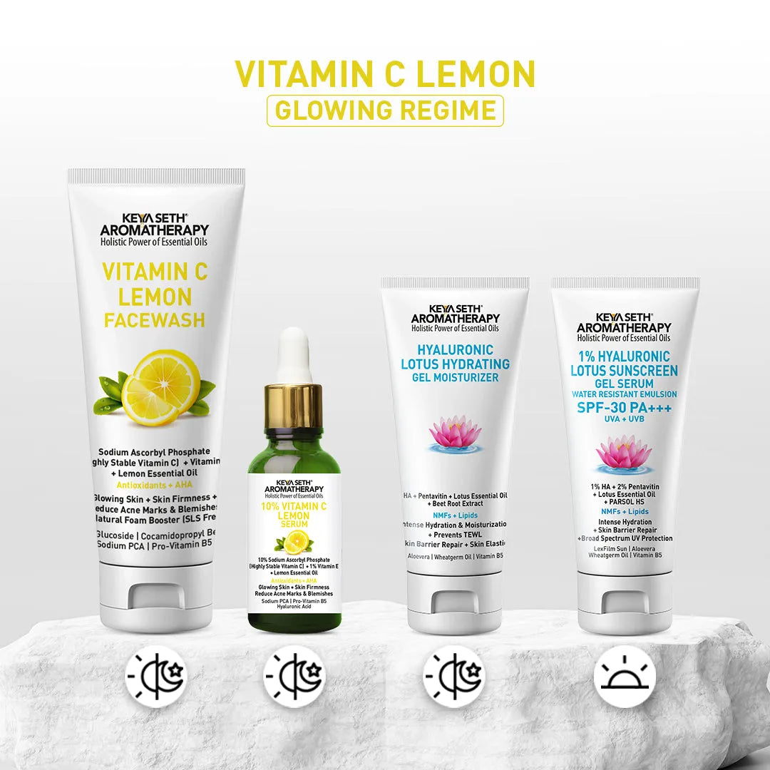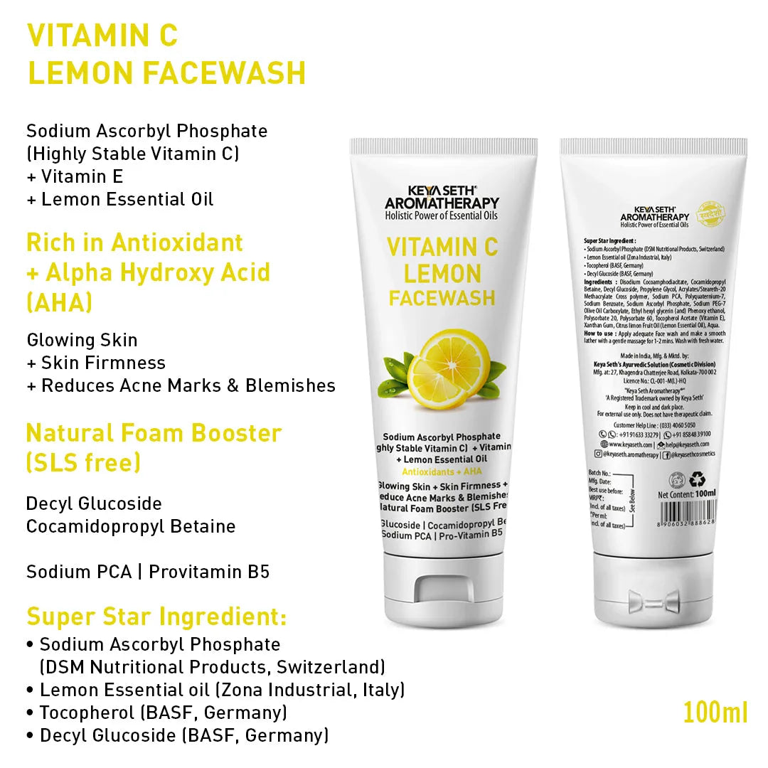 Vitamin C Lemon Combo: Facewash & Serum with Sodium Ascorbyl Phosphate, Vitamin E & AHA for Radiant, Firm, Acne-Free Skin